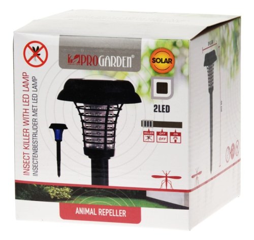 • solární lampa určená k osvětlení a hubení létajícího hmyzu- funguje také jako zahradní osvětlení- lze libovolně přepínat mezi funkcemi lapače hmyzu a obyčejným svícením- napájení integrovanou solární baterií- UV zářivka přitahuje hmyz v rozsahu 360ti stupňů až na 30m2 daleko- elektrický výboj účinně hubí nejen komáry, ale veškerý poletující hmyz- ekologický provoz bez kouře, jedů a chemických prostředků- vhodná k umístění do země i k zavěšení- nenahraditelná pomůcka na zahradu, ke grilu, na chatu, terasu či balkóny- snadné a bezpečné použití- jednoduché čištění- napájení: 220/240V- rozměry lampy: 14,5 x výška 40,5 cm