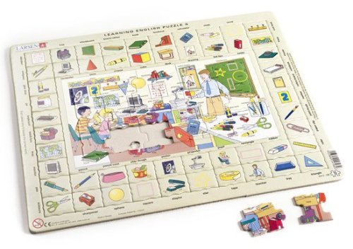 Puzzle pro výuku angličtiny - rozšíření české i anglické slovní zásoby. Co všechno potřebujeme do školy? Zábavné učení anglických slovíček nejen pro děti. K jednotlivým abecedně seřazeným anglickým názvům na okraji se přiřazují dílky s obrázkem. Uprostřed je 18ti dílkové klasické puzzle, na kterém je vyobrazena kompletní scéna zahrnující výuková slovíčka včetně jejich anglického pojmenování. Děti, které neznají název anglicky nebo neví, co znamená, mohou nejprve vyobrazení nebo pojmenování vyhledat na obrázku uprostřed. Každý dílek má jiný tvar a celé puzzle lze složit, jen když jsou všechny dílky umístěny správně.