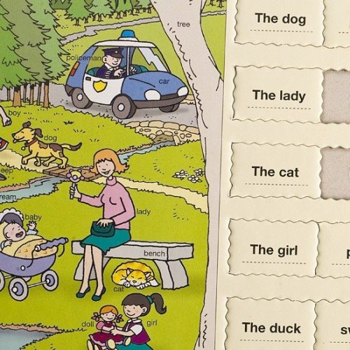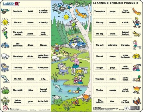 Puzzle Hodina angličtiny se 964 dílky jsou výukové puzzle zaměřené na tvorbu jednoduchých vět. Obrázky zobrazují aktivity zvířat a lidí, poskytují zábavný prostor pro učení angličtiny. K jednotlivým obrázkům na okraji lze přiřadit dílky obsahující podmět (KDO) a přísudek (CO DĚLÁ?), čímž se utvářejí jednoduché věty. Uprostřed je zobrazena kompletní scéna s anglickým pojmenováním osob, zvířat nebo věcí. Každý dílek má unikátní tvar a celé puzzle lze složit pouze tehdy, jsou-li všechny dílky správně umístěny.