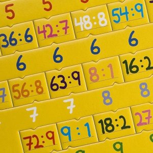 Puzzle s jednoduchými početními příklady na procvičování dělení. Děti se učí dělit zábavnou formou, musí umístit dílek ke správnému výsledku. Dílky je možné vložit pouze na správné místo. Puzzle je v češtině.