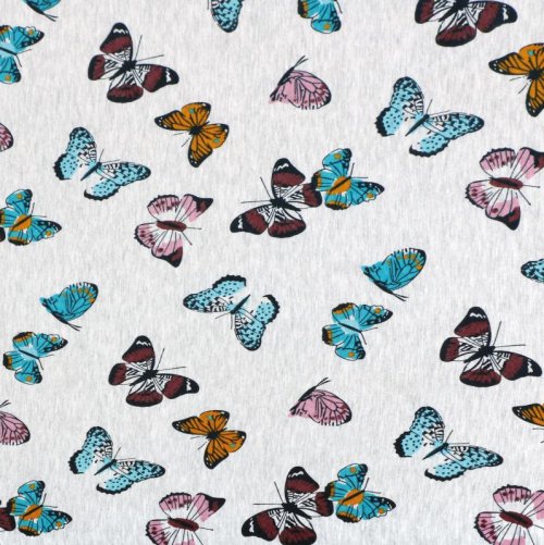 Látka - elastický úplet s potiskem - šířka 175 cm - Motýlek