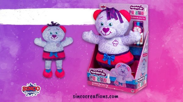 Látkový vymalovávací medvídek – vymaluj si svého medvídka přiloženými fixami. Dva druhy růžový a fialový. Velikost medvídka 38 cm.