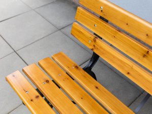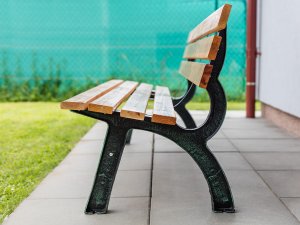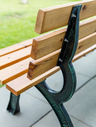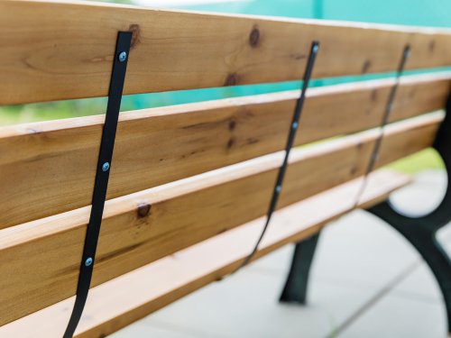 Lavička je osazena 7 masivními prkny o velikosti 180 x 8 x 2,3 cm.