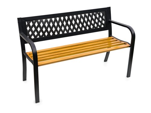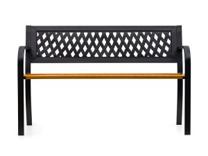 Zahradní lavička LARNAKA je vyrobená z oceli v černé barvě v kombinaci s nástřikem imitujícím přírodní dřevo. Rozměry lavičky: 119 x 50 x 75 cm. Nosnost lavičky: 150 kg.