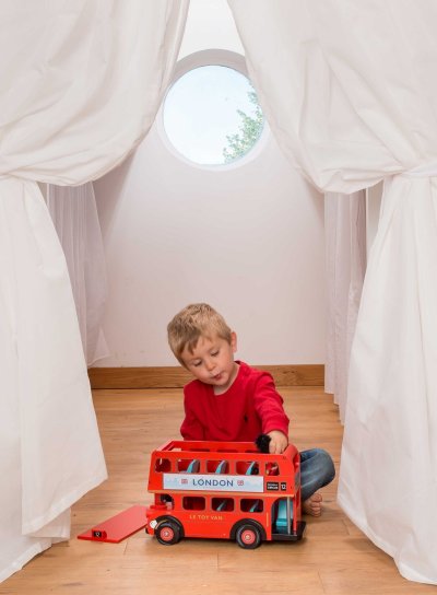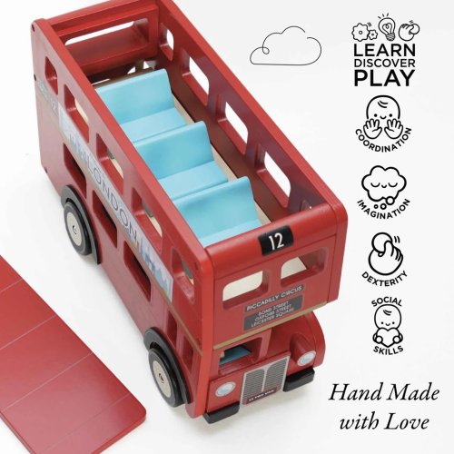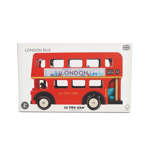 S autobusem London můžete toto hlavní město projet bezpečně a stylově. Ikonická hračka vyhrála několik ocenění a je zřejmě nejoblíbenější hračkou z nabídky Le Toy Van. Sytě červený exteriér londýnského dvoupatrového autobusu má realistické značení, děti si s ním jistě užijí mnoho představivé zábavy. Samozřejmě mu nechybí sedadla, má odklápěcí střechu i vrchní patro. Hračka pomůže s rozvojem představivosti, zručnosti a jemné motoriky. Vyrobeno z udržitelného dřeva, malováno barvami na bázi vody. Hračky s účelemVšechny hračky firmy Le Toy Van jsou vyrobeny s cílem – aby dlouho vydržely. Designovány s láskou zkušenými řemeslníky za použití etických praktik a udržitelných materiálů, které jsou laskavější k naší planetě. Hlavní vlastnosti: vyrobeno eticky z udržitelného FSC dřevatestováno dle nejpřísnějších standardůmalováno netoxickými barvami na bázi vodyinspiruje k představivé hřerozvíjí kognitivní dovednostihračka bez obsahu plastu Ocenění hračky:Junior Design Best Online Fashion Retailer Award 2011Right Start Best Toy Gold Award 2011 Auta & stavby: Stavební a motorická kolekce Le Toy Van, která vyhrála mnoho ocenění. Přesněji prozatím přes 15 ocenění za představivá auta a stavební hračky. Podporují dětskou fantazii, jsou ideální k představivé hře, rozvíjí kreativitu a hravě zlepšují dětskou koordinaci ruka‑oko. Značka a certifikát FSC® (Forest Stewardship Council) zaručuje, že dřevo, ze kterého byl produkt vyroben, nebylo vytěženo nelegálně a pochází z lesů obhospodařovaných šetrným či přírodě blízkým způsobem, ve kterém jsou dodržovány přísné environmentální a sociální požadavky. Značka FSC® na výrobku znamená, že svým nákupem pomáháte chránit lesy a podporujete šetrné, odpovědné či přírodě blízké hospodaření, díky kterému jsou naše lesy stabilnější, zdravější, mají přirozenou druhovou skladbu a lépe odolávají negativním následkům klimatických změn.