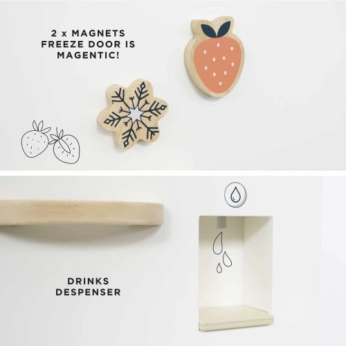 Vylepšete svou kuchyňku touto úžasnou volně stojící lednicí s mrazákem! Odolná hračka s lákavým retro designem je plná interaktivních funkcí pro větší zábavu a víc nápadité hraní rolí. Objevte vestavěný dávkovač vody, ovládání teploty či přihrádky na ovoce a zeleninu. Kompletní set přichází také s řadou příslušenství včetně 2 nanuků, stojanu, tácků na vejce a led a láhve na mléko či smoothie. Dveře ledničky jsou magnetické a navíc jsou zde dva praktické, zdobné magnety. Lednice je kompatibilní s velkou kuchyní Le Toy Van (kód TV347). Sada je vyrobena ze dřeva s certifikací FSC® (dřevo z lesů obhospodařovaných udržitelným způsobem) a zdobena barvami na vodní bázi bezpečnými pro děti. Hračky s účelemVšechny hračky firmy Le Toy Van jsou vyrobeny s cílem – aby dlouho vydržely. Designovány s láskou zkušenými řemeslníky za použití etických praktik a udržitelných materiálů, které jsou laskavější k naší planetě. Hlavní vlastnosti: vyrobeno eticky z FSC udržitelného dřevamalováno netoxickými barvami na bázi vodytestováno dle nejpřísnějších standardůobsahuje lednici s mrazákem, 2 magnety, tác na ledové kostky, tác na vejce, 2 nanuky, 2 láhve, dávkovač vodyinspiruje k nápadité hře Značka a certifikát FSC® (Forest Stewardship Council) zaručuje, že dřevo, ze kterého byl produkt vyroben, nebylo vytěženo nelegálně a pochází z lesů obhospodařovaných šetrným či přírodě blízkým způsobem, ve kterém jsou dodržovány přísné environmentální a sociální požadavky. Značka FSC® na výrobku znamená, že svým nákupem pomáháte chránit lesy a podporujete šetrné, odpovědné či přírodě blízké hospodaření, díky kterému jsou naše lesy stabilnější, zdravější, mají přirozenou druhovou skladbu a lépe odolávají negativním následkům klimatických změn.