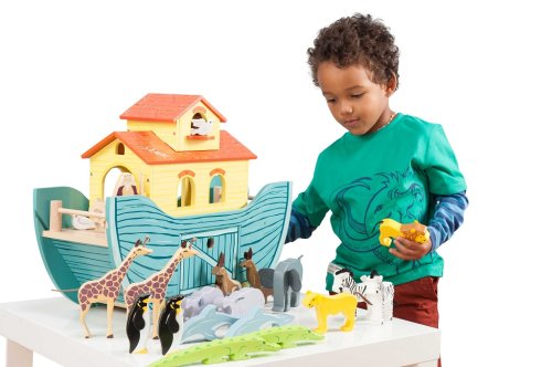 Tradiční hračka je připravena na plavbu dětským světem představivosti. Při hře můžete děti seznámit s příběhem Noema, jeho ženy a zvířat. Velká archa je opravdu detailní, deset párů zvířat je ručně malováno, stejně jako figurky lidí. Na přídi lodi výsuvný panel, díky kterému bude hra jednodušší, v trupu lodi odklápěcí dveře, díky kterým mohou zvířata na loď nastoupit i vystoupit. Pomůže s rozvojem zručnosti a kognitivních dovedností. Hračka bez obsahu plastu. Hračky s účelemVšechny hračky firmy Le Toy Van jsou vyrobeny s cílem – aby dlouho vydržely. Designovány s láskou zkušenými řemeslníky za použití etických praktik a udržitelných materiálů, které jsou laskavější k naší planetě. Hlavní vlastnosti: vyrobeno eticky z udržitelného dřevatestováno dle nejpřísnějších standardůmalováno netoxickými barvami na bázi vodyinspiruje k představivé hřerozvíjí kognitivní dovednosti Kolekce balančních arch: Tato kolekce má mnoho krásných detailů, vdechne zvířátkům život. Je vhodná od 12 měsíců do 3 let, pomáhá s rozvojem různých dovedností, například hra na role, zručnost, kognitivní dovednosti. V této kolekci jsou hlavní tři faktory – vkládání tvarů, balancování zvířátek a představivá hra. Všechny archy jsou inspirovány Noem a jeho zvířátky, tak ať si děti hru velmi užijí!