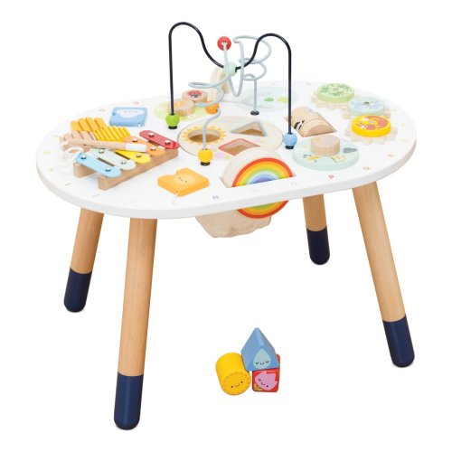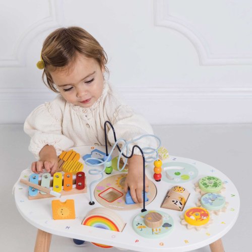 Tento aktivní motorický stůl potěší nejen oko, ale také ostatní smysly. Perfektní hračka pro batolata, pomůže s rozvojem představivosti. Stoleček je plný multisenzorických aktivit, které zabaví všechny zvídavé děti. Najdou na něm korálkový labyrint, vkládačku, xylofon, ozubená kolečka, otočné chrastítko a další! Takový počet aktivit děti zabaví na dlouhé hodiny.Tento robustní stoleček vám vydrží opravdu dlouho, je vyroben z udržitelného FSC® dřeva a dekorován zářivými základními barvami, které jsou netoxické. Senzorické hračky Le Toy Van si můžete předávat z generace na generaci. Hlavní vlastnosti: vyrobeno z FSC dřevamultifunkční dřevěný aktivní stolekrozvíjí dětské smysly během hryveselý pestrobarevný design stimuluje představivostudržitelná hračka inspirována přírodou Petilou kolekce: Kolekce pro nemluvňata a batolata od Le Toy Van obsahuje hlavně hmatové hračky, které mají nejmenším posloužit také jako učební prostředky. Kolekce je inspirována přírodou kolem nás a je navržena tak, aby rozvíjela smysly dětí pomocí rozdílných zvuků, textur, tvarů a hmotností. Děti tak od malička zapojí všechny své smysly. V kolekci najdete například skládačky, vkládačky, chodítka, … Značka a certifikát FSC® (Forest Stewardship Council) zaručuje, že dřevo, ze kterého byl produkt vyroben, nebylo vytěženo nelegálně a pochází z lesů obhospodařovaných šetrným či přírodě blízkým způsobem, ve kterém jsou dodržovány přísné environmentální a sociální požadavky. Značka FSC® na výrobku znamená, že svým nákupem pomáháte chránit lesy a podporujete šetrné, odpovědné či přírodě blízké hospodaření, díky kterému jsou naše lesy stabilnější, zdravější, mají přirozenou druhovou skladbu a lépe odolávají negativním následkům klimatických změn.