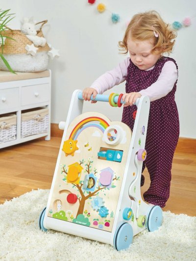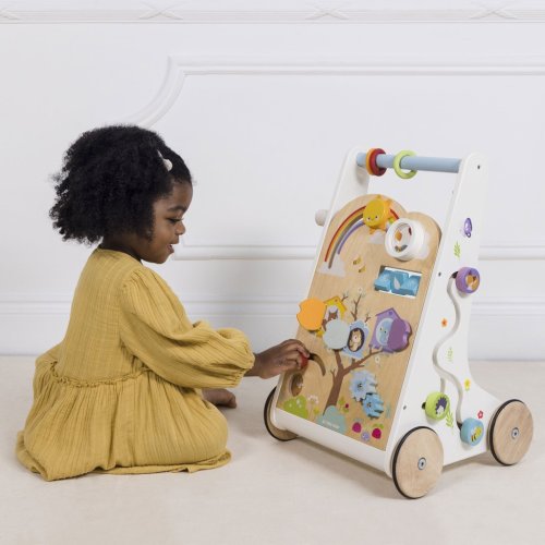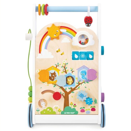Dřevěné chodítko s aktivitami bude perfektním dárkem pro děti, které začínají chodit. Podpoří je a dodá jim odvahu při prvních krůčcích. Krásná hračka v motivu přírody, s ilustracemi lesních zvířátek a dalšími roztomilými detaily. Senzorická hračka s 12 aktivitami děti podpoří v představivé hře. Je vyrobena z odolného a udržitelného kaučukového dřeva, malována netoxickými barvami na bázi vody. Hračky s účelemVšechny hračky firmy Le Toy Van jsou vyrobeny s cílem – aby dlouho vydržely. Designovány s láskou zkušenými řemeslníky za použití etických praktik a udržitelných materiálů, které jsou laskavější k naší planetě. Hlavní vlastnosti: vyrobeno eticky z udržitelného dřevatestováno dle nejpřísnějších standardůmalováno netoxickými barvami na bázi vodyinspiruje k představivé hřerozvíjí kognitivní dovednostimultifunkční hračka Petilou kolekce: Kolekce pro nemluvňata a batolata od Le Toy Van obsahuje hlavně hmatové hračky, které mají nejmenším posloužit také jako učební prostředky. Kolekce je inspirována přírodou kolem nás a je navržena tak, aby rozvíjela smysly dětí pomocí rozdílných zvuků, textur, tvarů a hmotností. Děti tak od malička zapojí všechny své smysly. V kolekci najdete například skládačky, vkládačky, chodítka, …