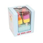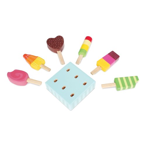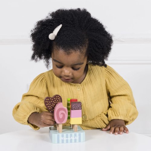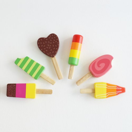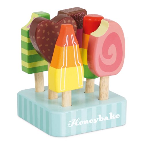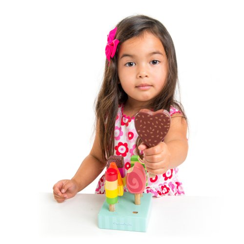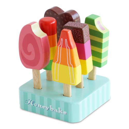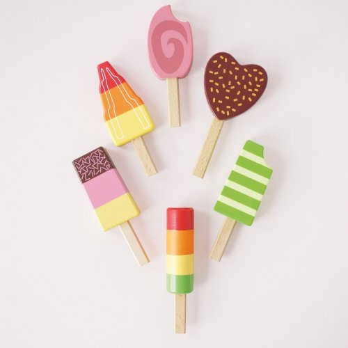 Sada šesti ručně malovaných nanuků je perfektní pro představivou hru. Odolná hračka z pevného kaučukového dřeva, které nechybí ani dřevěný stojan, v kterém lze nanuky servírovat. Čokoládové, ovocné i smetanové, každý z nich má vlastní realistický design plný detailů. Představivá hračka dětem pomůže s rozvojem jemné motoriky, také je podpoří v kreativní hře. Ideální dolpněk prodejního nebo zmrzlinového stánku. Hračky s účelemVšechny hračky firmy Le Toy Van jsou vyrobeny s cílem – aby dlouho vydržely. Designovány s láskou zkušenými řemeslníky za použití etických praktik a udržitelných materiálů, které jsou laskavější k naší planetě. Hlavní vlastnosti: vyrobeno eticky z udržitelného FSC dřevatestováno dle nejpřísnějších standardůmalováno netoxickými barvami na bázi vodyinspiruje k představivé hřerozvíjí kognitivní dovednosti Ocenění hračky:Loved By Children Gold Award 2018 Honeybake kolekce: Hračky v této kolekci jsou vhodné k objevování, pomohou dětem s rozvojem představivosti, sociálních a verbálních dovedností a kognitivních funkcí. Tradiční design s moderními detaily děti jistě bude bavit. Honeybake je kolekce Le Toy Van, která vyhrála nejvíce ocenění, a to za design, kvalitu, bezpečnost a také za vzdělávací a herní hodnotu. Značka a certifikát FSC® (Forest Stewardship Council) zaručuje, že dřevo, ze kterého byl produkt vyroben, nebylo vytěženo nelegálně a pochází z lesů obhospodařovaných šetrným či přírodě blízkým způsobem, ve kterém jsou dodržovány přísné environmentální a sociální požadavky. Značka FSC® na výrobku znamená, že svým nákupem pomáháte chránit lesy a podporujete šetrné, odpovědné či přírodě blízké hospodaření, díky kterému jsou naše lesy stabilnější, zdravější, mají přirozenou druhovou skladbu a lépe odolávají negativním následkům klimatických změn.