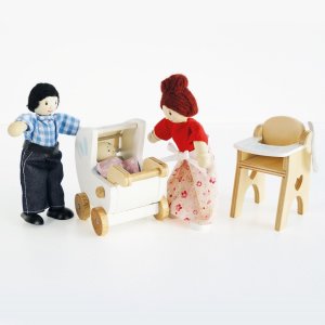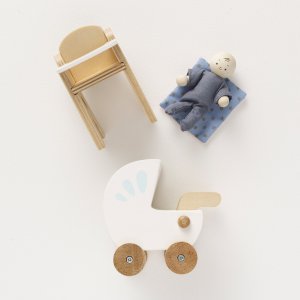 Dřevěný malovaný kočárek s postavičkou miminka. Součástí setu je vysoká jídelní židlea, jídelní souprava pro miminko a taška. Textilní doplňky jsou vyrobeny ručně. Vyrobeno ekologicky z přírodního, odolného kaučukového dřeva. Hlavní vlastnosti: rozměry jídelní židle 5x6x8 cmvyrobeno z trvanlivého, udržitelného kaučukového dřevaeticky vyrobeno s láskoudůkladně testováno, aby splňovalo nejvyšší bezpečnostní standardyzdobeno netoxickými barvami na vodní bázipodporuje kreativitu prostřednictvím nápadité hry pomáhá rozvíjet jemnou motoriku a koordinaci