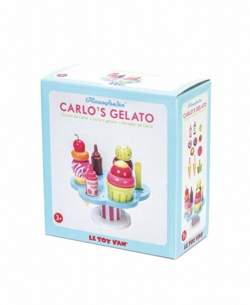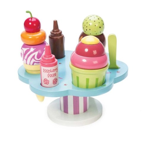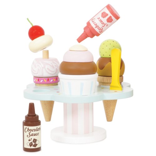Kopeček nebo dva? Děti si s touto představivou hračkou na role užijí mnoho zábavy. Děti mohou zmrzlinu servírovat v kelímku nebo kornoutku, lze vybrat ze dvou topingů i posypek, nechybí ani lžička. Perfektní hračka nejen pro teplé letní měsíce. Vyrobeno z odolného a udržitelného FSC® dřeva, malováno netoxickými barvami na bázi vody. Hračky s účelemVšechny hračky firmy Le Toy Van jsou vyrobeny s cílem – aby dlouho vydržely. Designovány s láskou zkušenými řemeslníky za použití etických praktik a udržitelných materiálů, které jsou laskavější k naší planetě. Hlavní vlastnosti: vyrobeno eticky z udržitelného dřevatestováno dle nejpřísnějších standardůmalováno netoxickými barvami na bázi vodyinspiruje k představivé hřerozvíjí kognitivní dovednosti Honeybake kolekce: Hračky v této kolekci jsou vhodné k objevování, pomohou dětem s rozvojem představivosti, sociálních a verbálních dovedností a kognitivních funkcí. Tradiční design s moderními detaily děti jistě bude bavit. Honeybake je kolekce Le Toy Van, která vyhrála nejvíce ocenění, a to za design, kvalitu, bezpečnost a také za vzdělávací a herní hodnotu.