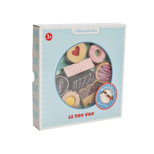 Kdo si dá sušenku? Na výběr je 9 domácích sušenek, které jsou samozřejmě ze dřeva. Mají rozdílné tvary i ilustrace. Sušenky jsou servírovány na dekorovaném talíři. Perfektní hračka pro čajové dýchánky i jinou představivou hru. Malováno netoxickými barvami na bázi vody. Hračky s účelemVšechny hračky firmy Le Toy Van jsou vyrobeny s cílem – aby dlouho vydržely. Designovány s láskou zkušenými řemeslníky za použití etických praktik a udržitelných materiálů, které jsou laskavější k naší planetě. Hlavní vlastnosti: vyrobeno eticky z udržitelného dřevatestováno dle nejpřísnějších standardůmalováno netoxickými barvami na bázi vodyinspiruje k představivé hřerozvíjí kognitivní dovednosti Honeybake kolekce: Hračky v této kolekci jsou vhodné k objevování, pomohou dětem s rozvojem představivosti, sociálních a verbálních dovedností a kognitivních funkcí. Tradiční design s moderními detaily děti jistě bude bavit. Honeybake je kolekce Le Toy Van, která vyhrála nejvíce ocenění, a to za design, kvalitu, bezpečnost a také za vzdělávací a herní hodnotu.