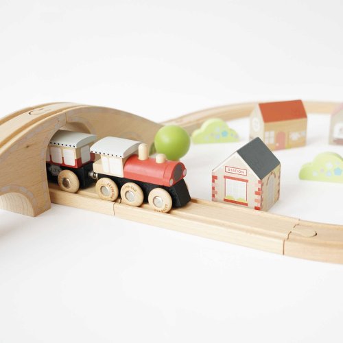 Tato dřevěná souprava je nejen úžasnou zábavou pro naše nejmenší, ale i skvělým bezplastovým doplňkem do dětského pokojíčku! 40dílná sada zahrnuje dráhu s klenutými kamennými mosty, vláčky, doplňky a řadu aktivit, jenž inspirují k nápadité hře. Dřevěné vagóny jsou magnetické, tudíž se snadno spojují. Detailní budovy jako stanice, farma a nemocnice spolu s keři přidávají hře více realistické atmosféry a posouvají tak možnosti dál. Vláčkodráha je vyrobena ze dřeva s certifikací FSC® (dřevo z lesů obhospodařovaných udržitelným způsobem) a zdobena barvami na vodní bázi bezpečnými pro děti. Hračky s účelemVšechny hračky firmy Le Toy Van jsou vyrobeny s cílem – aby dlouho vydržely. Designovány s láskou zkušenými řemeslníky za použití etických praktik a udržitelných materiálů, které jsou laskavější k naší planetě. Hlavní vlastnosti: vyrobeno eticky z FSC udržitelného dřevamalováno netoxickými barvami na bázi vodyobsahuje - 17 kolejí/mostů, 4 vagony, 3 stany, 7 budov a 9 stromůtestováno dle nejpřísnějších standardůinspiruje k nápadité hře Značka a certifikát FSC® (Forest Stewardship Council) zaručuje, že dřevo, ze kterého byl produkt vyroben, nebylo vytěženo nelegálně a pochází z lesů obhospodařovaných šetrným či přírodě blízkým způsobem, ve kterém jsou dodržovány přísné environmentální a sociální požadavky. Značka FSC® na výrobku znamená, že svým nákupem pomáháte chránit lesy a podporujete šetrné, odpovědné či přírodě blízké hospodaření, díky kterému jsou naše lesy stabilnější, zdravější, mají přirozenou druhovou skladbu a lépe odolávají negativním následkům klimatických změn.