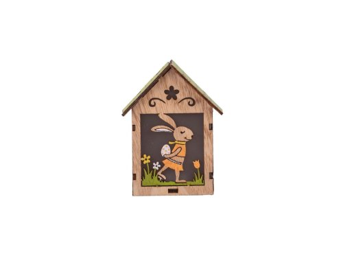 Led dekorace dřevo 85×115 mm - zajíček v domečku, přírodní/zelená