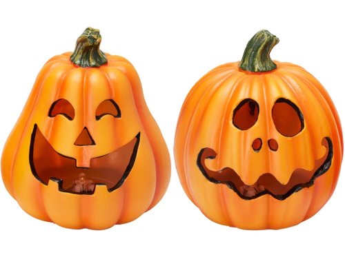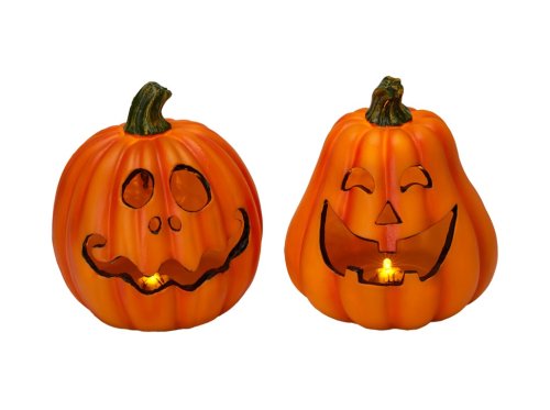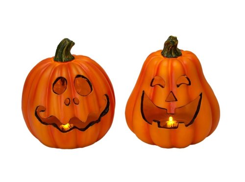Detailně zpracovaná dýně z pevného polyresinu se zabudovaným LED světlem. Příjemně září teplým světlem a dodá každému večeru kouzelnou atmosféru. Funguje na baterie (nejsou součástí), vhodná pro vnitřní použití. Zboží je dodáváno v mixu. Doručované zboží je vybíráno náhodně a nelze vybrat konkrétní provedení.