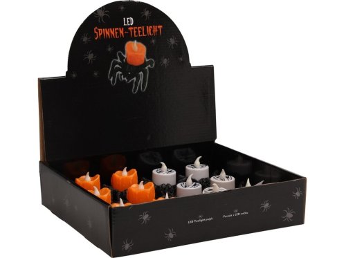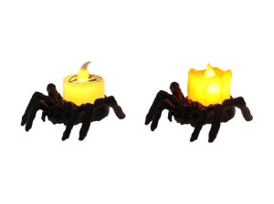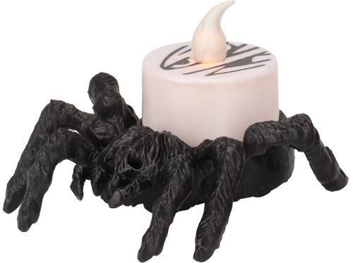 Vtipná LED dekorace ve tvaru pavouka, který drží imitaci čajové svíčky. Blikající světlo vytvoří zábavný efekt na halloweenský večer. Pro děti i dospělé – bezpečná alternativa skutečných svíček.