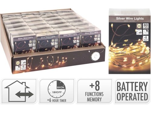 LED světelný řetěz venkovní, žlutá barva, 80ks diod s časovačem