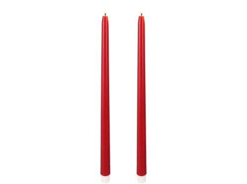 Elegantní sada dvou kónických LED svíček v červené barvě přinese do vašeho domova slavnostní atmosféru a bezpečné osvětlení bez rizika otevřeného ohně. Každá svíčka má výšku 380 mm a je vyrobena s důrazem na detail pro co nejvěrnější napodobení skutečného plamene. Díky integrovanému časovači a praktickému dálkovému ovladači můžete svíčky snadno zapínat, vypínat a nastavovat dobu svícení dle potřeby. Ideální jako dekorace na sváteční stůl, do svícnu i jako bezpečné světlo do domácnosti s dětmi či domácími mazlíčky.