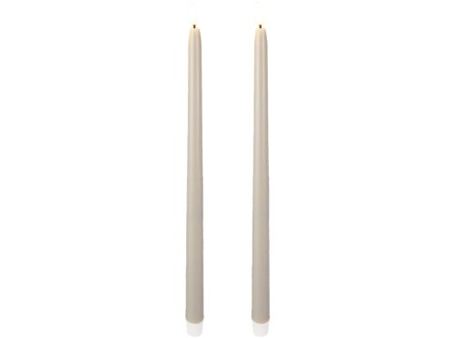 Elegantní sada dvou kónických LED svíček v šedé barvě přinese do vašeho domova slavnostní atmosféru a bezpečné osvětlení bez rizika otevřeného ohně. Každá svíčka má výšku 380 mm a je vyrobena s důrazem na detail pro co nejvěrnější napodobení skutečného plamene. Díky integrovanému časovači a praktickému dálkovému ovladači můžete svíčky snadno zapínat, vypínat a nastavovat dobu svícení dle potřeby. Ideální jako dekorace na sváteční stůl, do svícnu i jako bezpečné světlo do domácnosti s dětmi či domácími mazlíčky.