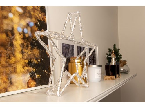 Tato LED hvězda o rozměru 310 × 310 mm je dekorativní a svítící prvek vhodný na zavěšení na okno, stěnu nebo strop. LED světlo s časovačem umožňuje pohodlné ovládání a vytváří jemné a hřejivé světlo. Křišťálový vzhled dodává hvězdě elegantní a slavnostní charakter. Perfektní volba pro vánoční dekorace, zimní aranžmá nebo romantické večery.