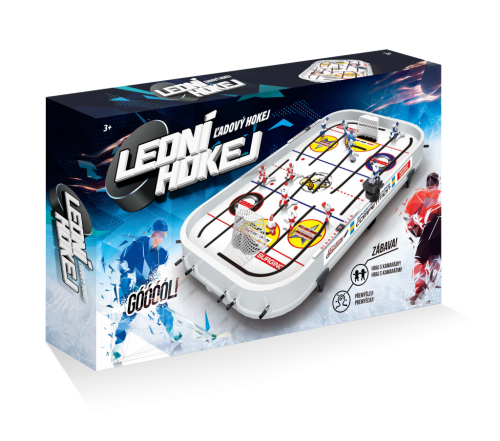 Hra je dodávána v barevném a atraktivním obalu s výrazným názvem "Lední hokej" a ilustracemi hokejistů v akci, což ji činí ideální volbou jako dárek nebo zábavu pro rodinné večery. Tento stolní hokej je skvělou volbou pro všechny, kdo hledají aktivní a soutěživou hru, která pobaví a zároveň rozvíjí důležité motorické dovednosti.