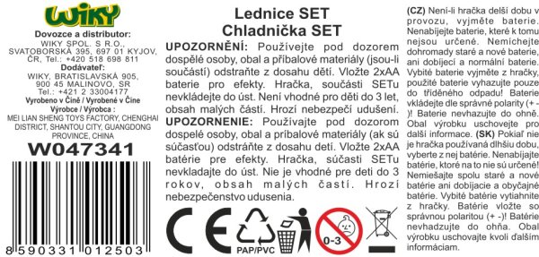 Lednice s efekty. Velikost 15 cm. Vydává světelné a zvukové efekty. Přesné rozměry 10x6x15 cm. Baterie 2xAA nejsou součástí balení.
