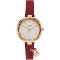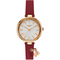 Dámské náramkové hodinky Napájení z baterie Průměr pouzdra 33,0 mm Pouzdro ve tvaru kruhu Kovové pouzdro Růžové zlato barva pouzdra Kožený tah Fialová barva tahu Ručičkový ciferník PERLEŤOVÁ barva ciferníku Ciferník s dvanácti indexy Materiál skla - minerální sklo Odolné proti vodě při běžném nošení