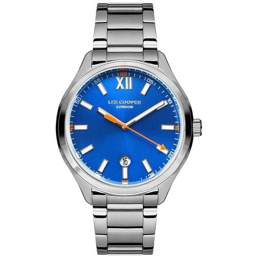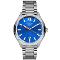 Pánské náramkové hodinky Napájení z baterie Průměr pouzdra 41,0 mm Pouzdro ve tvaru kruhu Kovové pouzdro Stříbrná barva pouzdra Ocelový tah Stříbrná barva tahu Ručičkový ciferník Modrá barva ciferníku Ciferník s dvanácti indexy Materiál skla - minerální sklo Odolné proti vodě při běžném nošení Datum