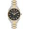 Dámské náramkové hodinky Napájení z baterie Průměr pouzdra 35,0 mm Pouzdro ve tvaru kruhu Kovové pouzdro Stříbrná/zlatá barva pouzdra Ocelový tah Stříbrná/zlatá barva tahu Ručičkový ciferník Černá barva ciferníku Ciferník s dvanácti indexy Materiál skla - minerální sklo Odolné proti vodě při běžném nošení Datum