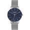 Pánské náramkové hodinky Napájení z baterie Průměr pouzdra 42,0 mm Pouzdro ve tvaru kruhu Kovové pouzdro Stříbrná barva pouzdra Ocelový tah Stříbrná barva tahu Ručičkový ciferník Modrá barva ciferníku Ciferník s dvanácti indexy Materiál skla - minerální sklo Odolné proti vodě při běžném nošení