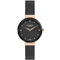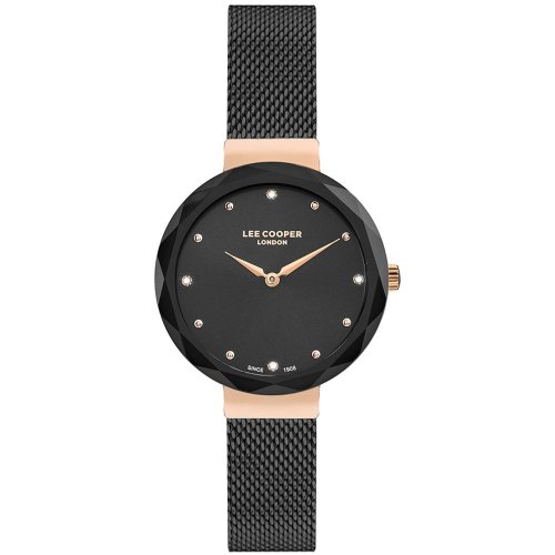 Dámské náramkové hodinky Napájení z baterie Průměr pouzdra 33,0 mm Pouzdro ve tvaru kruhu Kovové pouzdro Růžové zlato barva pouzdra Kovový tah ČERNÉ barva tahu Ručičkový ciferník Černá barva ciferníku Ciferník s dvanácti indexy Materiál skla - minerální sklo Odolné proti vodě při běžném nošení