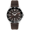Pánské náramkové hodinky Napájení z baterie Průměr pouzdra 44,0 mm Pouzdro ve tvaru kruhu Kovové pouzdro Stříbrná barva pouzdra Hnědá barva tahu Ručičkový ciferník Hnědá barva ciferníku Ciferník s dvanácti indexy Materiál skla - minerální sklo Odolné proti vodě během sprchování a mytí Datum