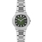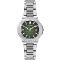 Dámské náramkové hodinky Napájení z baterie Průměr pouzdra 35,0 mm Pouzdro ve tvaru kruhu Kovové pouzdro Stříbrná barva pouzdra Ocelový tah Stříbrná barva tahu Ručičkový ciferník Zelená barva ciferníku Ciferník s dvanácti indexy Materiál skla - minerální sklo Odolné proti vodě při běžném nošení Datum