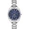 Dámské náramkové hodinky Napájení z baterie Průměr pouzdra 35,0 mm Pouzdro ve tvaru kruhu Kovové pouzdro Stříbrná barva pouzdra Ocelový tah Stříbrná barva tahu Ručičkový ciferník Modrá barva ciferníku Ciferník s dvanácti indexy Materiál skla - minerální sklo Odolné proti vodě při běžném nošení Datum