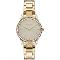 Dámské náramkové hodinky Napájení z baterie Průměr pouzdra 33,0 mm Pouzdro ve tvaru kruhu Kovové pouzdro Zlatavá barva pouzdra Kovový tah Zlatavá barva tahu Ručičkový ciferník Zlatavá barva ciferníku Ciferník s dvanácti indexy Materiál skla - minerální sklo Odolné proti vodě při běžném nošení