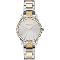 Dámské náramkové hodinky Napájení z baterie Průměr pouzdra 33,0 mm Pouzdro ve tvaru kruhu Kovové pouzdro Stříbrná/zlatá barva pouzdra Kovový tah Stříbrná/zlatá barva tahu Ručičkový ciferník Stříbrná barva ciferníku Ciferník s dvanácti indexy Materiál skla - minerální sklo Odolné proti vodě při běžném nošení