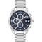 Pánské náramkové hodinky Napájení z baterie Průměr pouzdra 46,0 mm Pouzdro ve tvaru kruhu Kovové pouzdro Stříbrná barva pouzdra Kovový tah Stříbrná barva tahu Ručičkový ciferník TMAVO MODRÁ barva ciferníku Ciferník s dvanácti indexy Materiál skla - minerální sklo Odolné proti vodě během sprchování a mytí Datum Stopky