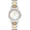 Dámské náramkové hodinky Napájení z baterie Průměr pouzdra 33,0 mm Pouzdro ve tvaru kruhu Kovové pouzdro Stříbrná barva pouzdra Kovový tah Stříbrná/zlatá barva tahu Ručičkový ciferník PERLEŤOVÁ barva ciferníku Ciferník s dvanácti indexy Materiál skla - minerální sklo Odolné proti vodě při běžném nošení