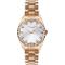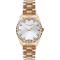 Dámské náramkové hodinky Napájení z baterie Průměr pouzdra 34,0 mm Pouzdro ve tvaru kruhu Kovové pouzdro Růžové zlato barva pouzdra Kovový tah Růžové zlato barva tahu Ručičkový ciferník Stříbrná barva ciferníku Ciferník s dvanácti indexy Materiál skla - minerální sklo Odolné proti vodě při běžném nošení