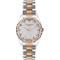 Dámské náramkové hodinky Napájení z baterie Průměr pouzdra 34,0 mm Pouzdro ve tvaru kruhu Kovové pouzdro Stříbrná/zlatá barva pouzdra Kovový tah Stříbrná/zlatá barva tahu Ručičkový ciferník PERLEŤOVÁ barva ciferníku Ciferník s dvanácti indexy Materiál skla - minerální sklo Odolné proti vodě při běžném nošení