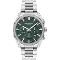 Pánské náramkové hodinky Napájení z baterie Průměr pouzdra 44,0 mm Pouzdro ve tvaru kruhu Kovové pouzdro Stříbrná barva pouzdra Kovový tah Stříbrná barva tahu Ručičkový ciferník Zelená barva ciferníku Ciferník s dvanácti indexy Materiál skla - minerální sklo Odolné proti vodě během sprchování a mytí Datum Stopky