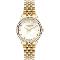 Dámské náramkové hodinky Napájení z baterie Průměr pouzdra 33,0 mm Pouzdro ve tvaru kruhu Kovové pouzdro Zlatavá barva pouzdra Kovový tah Zlatavá barva tahu Ručičkový ciferník PERLEŤOVÁ barva ciferníku Ciferník s dvanácti indexy Materiál skla - minerální sklo Odolné proti vodě při běžném nošení