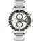 Pánské náramkové hodinky Napájení z baterie Průměr pouzdra 44,0 mm Pouzdro ve tvaru kruhu Kovové pouzdro Stříbrná barva pouzdra Kovový tah Stříbrná barva tahu Ručičkový ciferník Stříbrná barva ciferníku Ciferník s dvanácti indexy Materiál skla - minerální sklo Odolné proti vodě během sprchování a mytí Datum Stopky