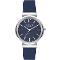 Dámské náramkové hodinky Napájení z baterie Průměr pouzdra 34,0 mm Pouzdro ve tvaru kruhu Kovové pouzdro Stříbrná barva pouzdra Kožený tah TMAVO MODRÁ barva tahu Kombinovaný ciferník Modrá barva ciferníku Ciferník s dvanácti indexy Materiál skla - minerální sklo Odolné proti vodě při běžném nošení