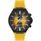 Pánské náramkové hodinky Napájení z baterie Průměr pouzdra 45,0 mm Pouzdro ve tvaru kruhu Kovové pouzdro ČERNÁ barva pouzdra Plastový tah Žlutá barva tahu Ručičkový ciferník Žlutá barva ciferníku Ciferník s dvanácti indexy Materiál skla - minerální sklo Odolné proti vodě při běžném nošení