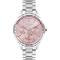 Dámské náramkové hodinky Napájení z baterie Průměr pouzdra 38,0 mm Pouzdro ve tvaru kruhu Kovové pouzdro Stříbrná barva pouzdra Kovový tah Stříbrná barva tahu Ručičkový ciferník Růžová barva ciferníku Ciferník s dvanácti indexy Materiál skla - minerální sklo Odolné proti vodě při běžném nošení