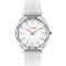 Dámské náramkové hodinky Napájení z baterie Průměr pouzdra 36,0 mm Pouzdro ve tvaru kruhu Kovové pouzdro Stříbrná barva pouzdra Kožený tah Bílá barva tahu Ručičkový ciferník PERLEŤOVÁ barva ciferníku Ciferník s dvanácti indexy Materiál skla - minerální sklo Odolné proti vodě při běžném nošení