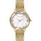 Dámské náramkové hodinky Napájení z baterie Průměr pouzdra 35,0 mm Pouzdro ve tvaru kruhu Kovové pouzdro Zlatavá barva pouzdra Kovový tah Zlatavá barva tahu Ručičkový ciferník PERLEŤOVÁ barva ciferníku Ciferník s dvanácti indexy Materiál skla - minerální sklo Odolné proti vodě při běžném nošení