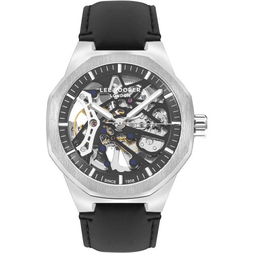 Pánské náramkové hodinky Automatický pohon Průměr pouzdra 43,0 mm Pouzdro ve tvaru osmihranu Kovové pouzdro Stříbrná barva pouzdra Kožený tah ČERNÉ barva tahu Ručičkový ciferník Materiál skla - minerální sklo Odolné proti vodě při běžném nošení